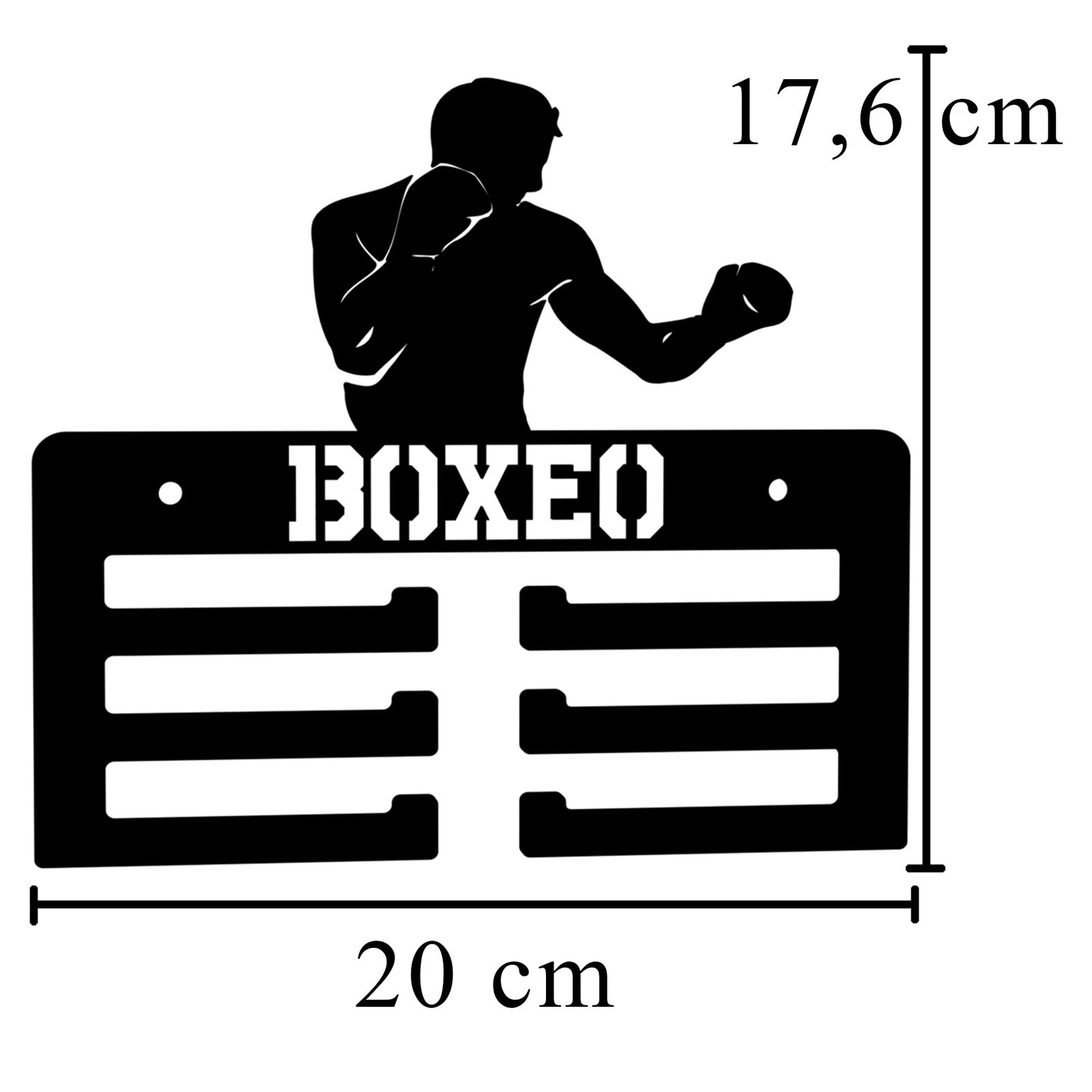 Este Medallero de Boxeo impreso en 3D es el complemento perfecto para cualquier amante del ring. Diseñado para colgar tus medallas de manera ordenada y llamativa, su estructura resistente sostiene tus victorias con orgullo. Ideal para boxeadores profesionales, aficionados o quienes entrenan con pasión.